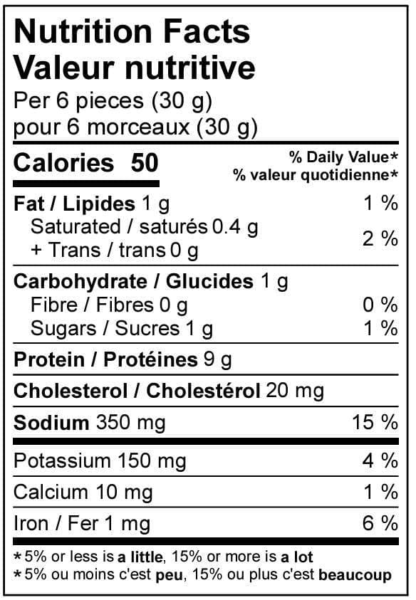 Our jerky is handcrafted from 100% premium Canadian beef. Top-cut meats, sliced against the grain, tumbled, marinated for 16-20 hours, and expertly smoked. Tender and savoury, a high-protein snack that packs a punch of flavour, craving satisfaction delivered in every bite – quick, convenient and so delicious.